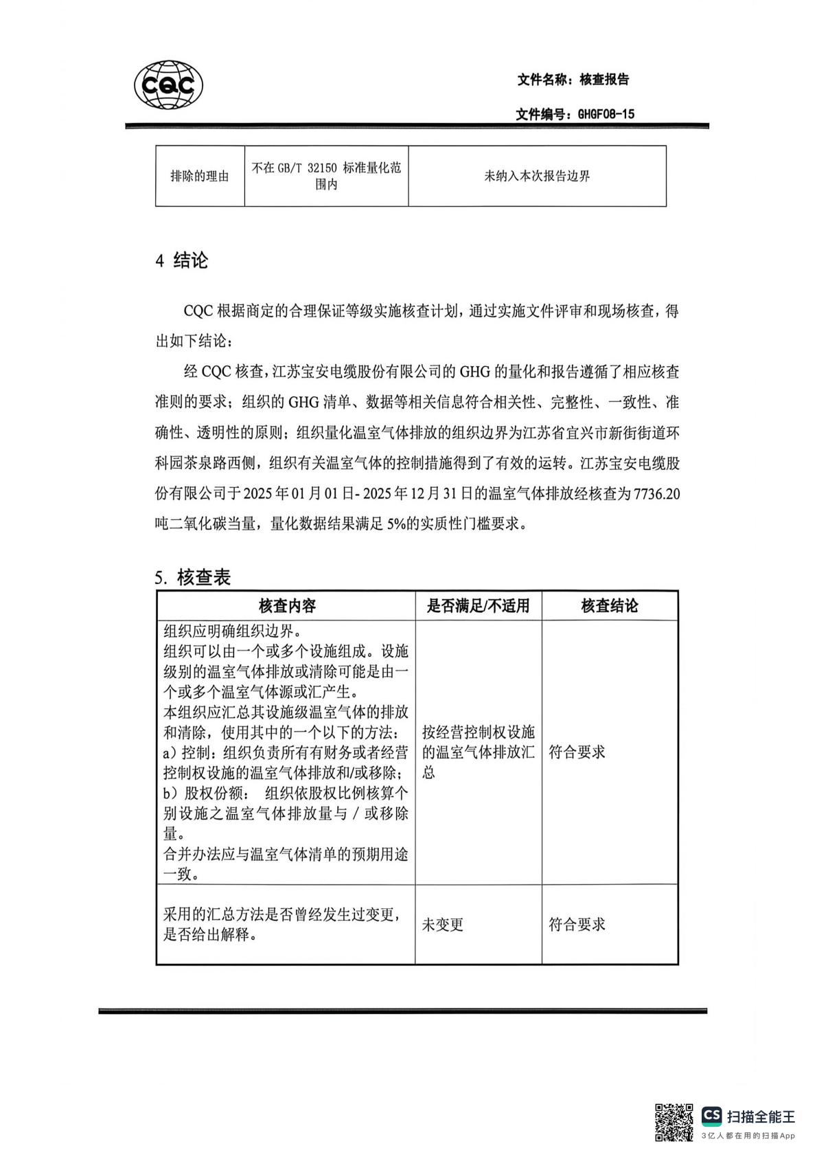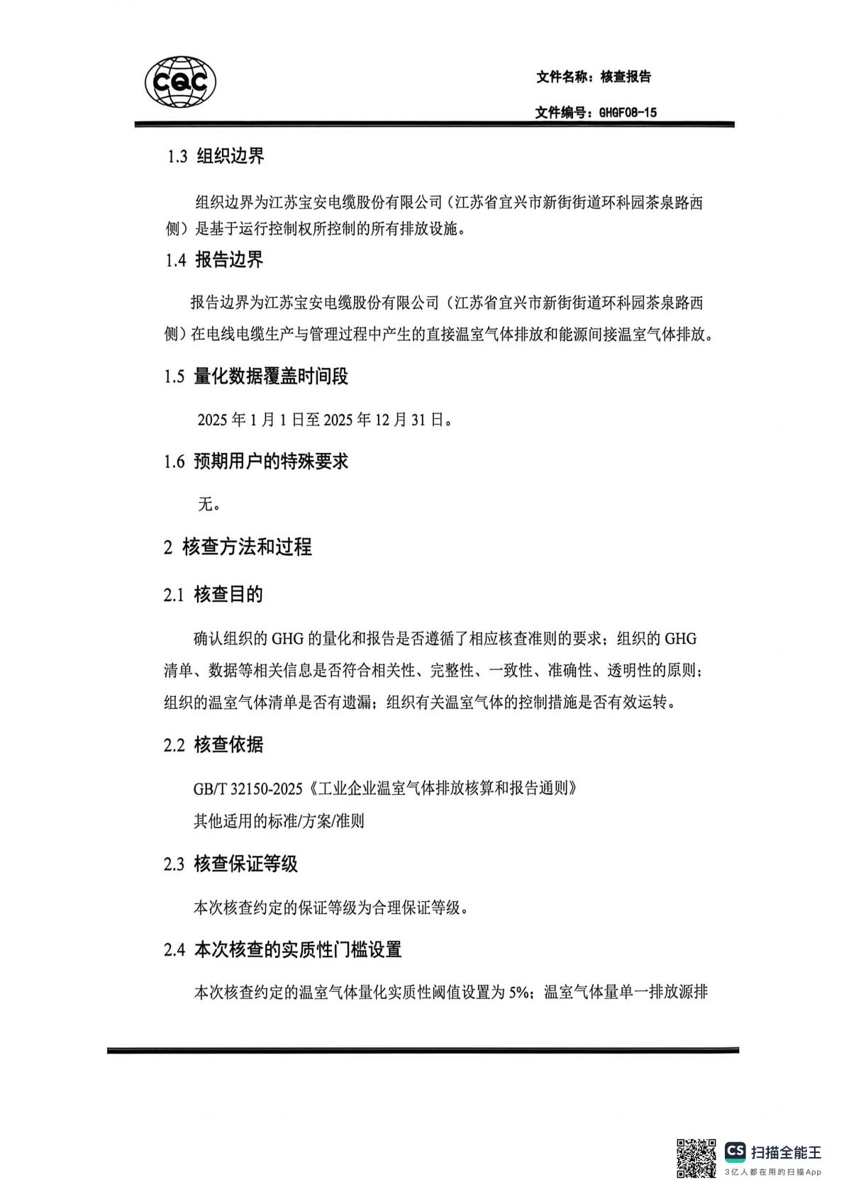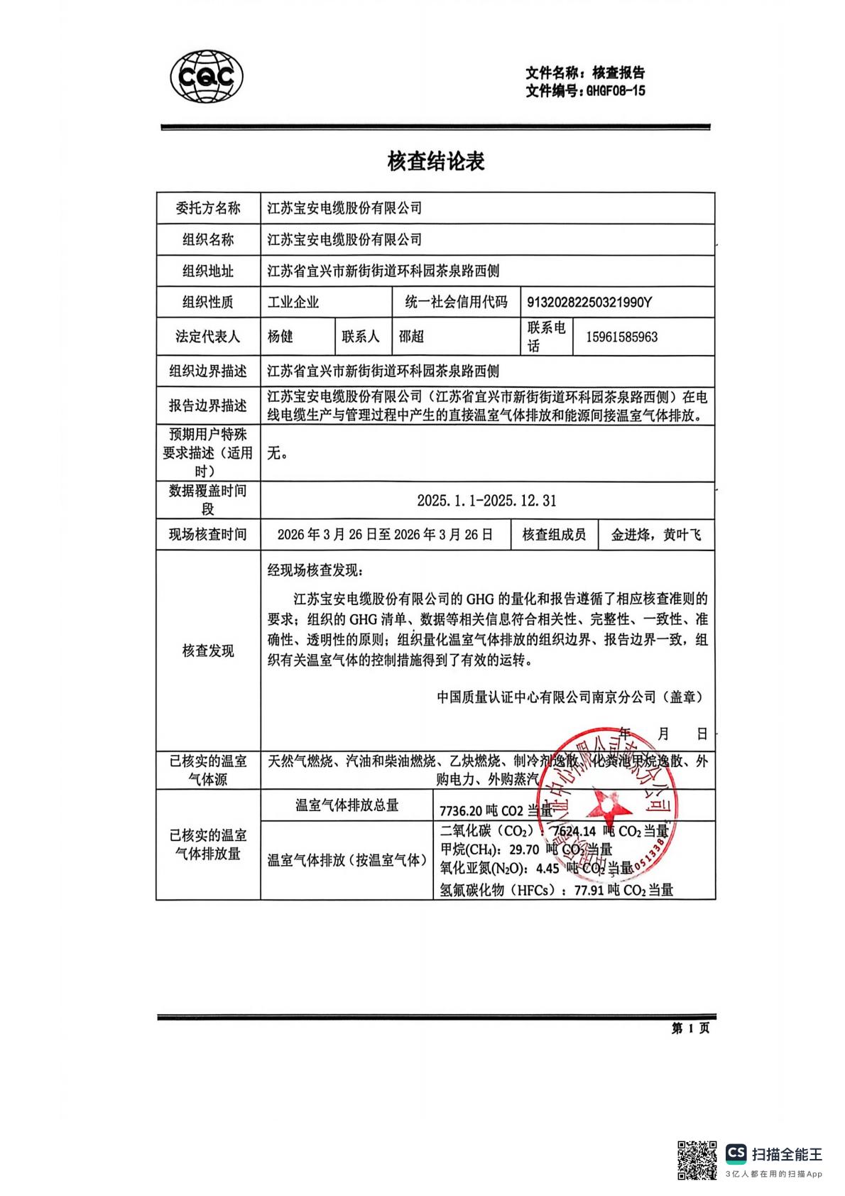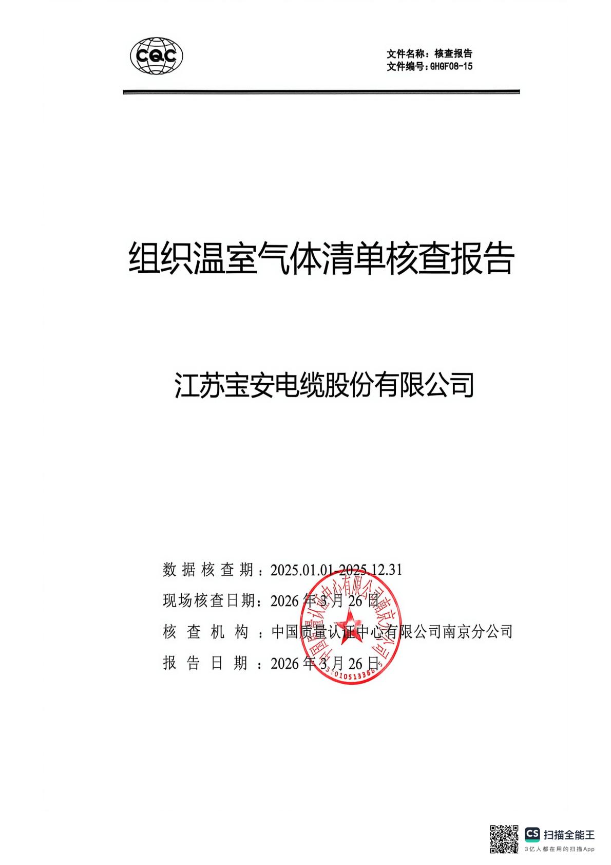 江苏宝安电缆股份有限公司温室气体清单核查报告