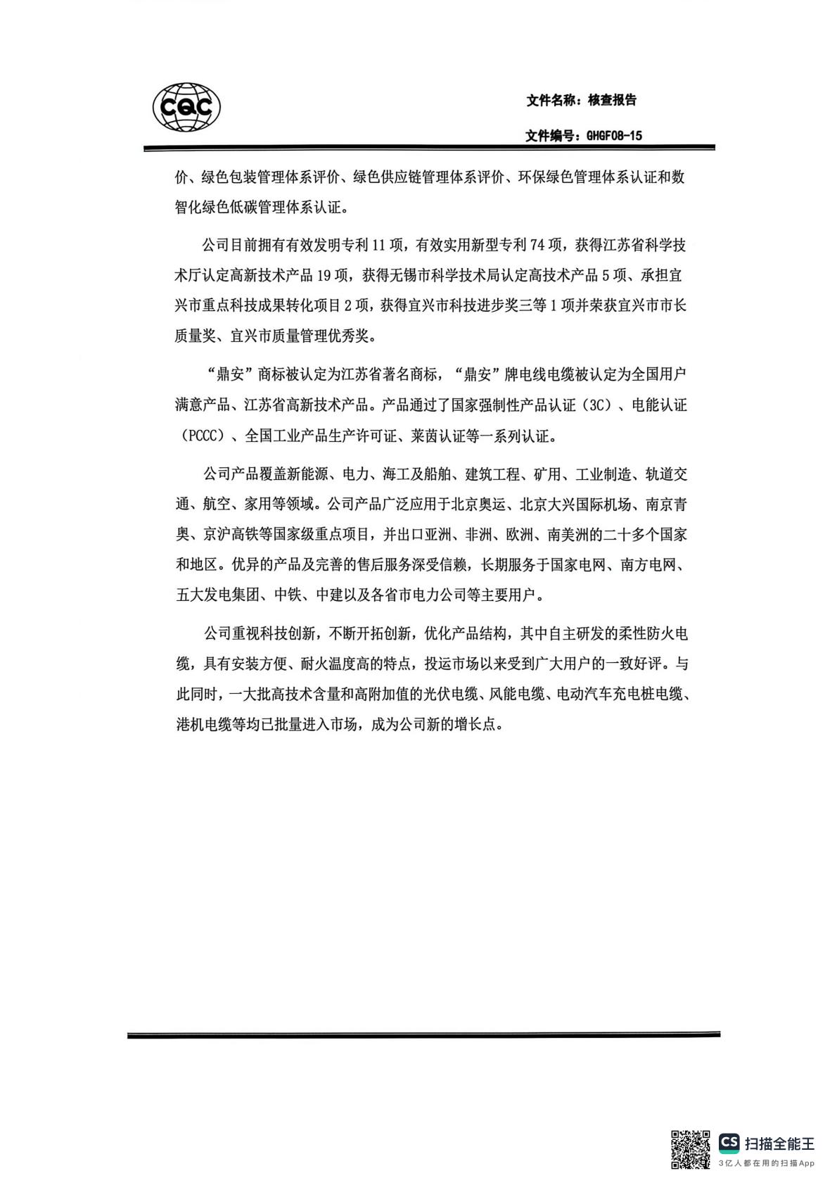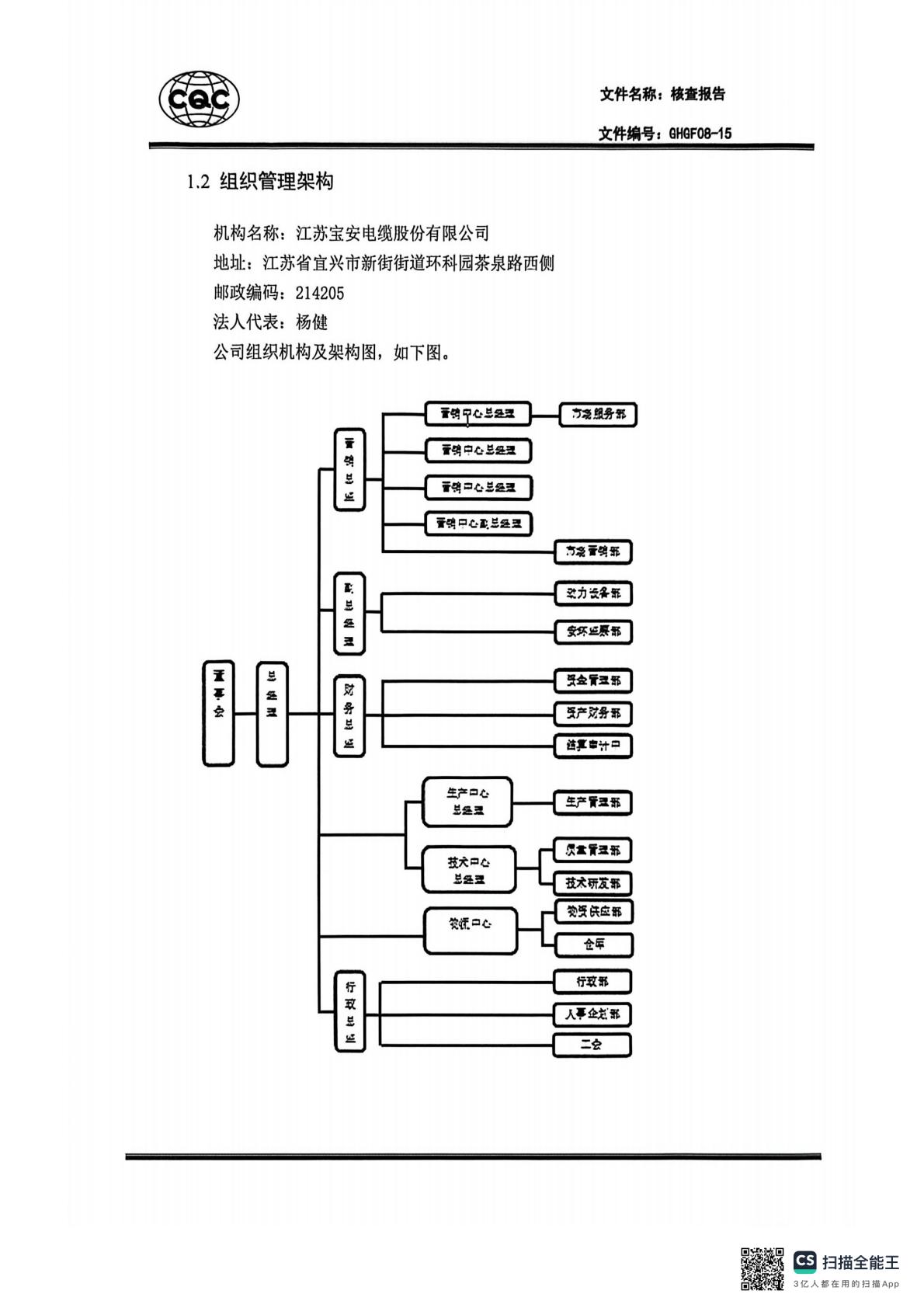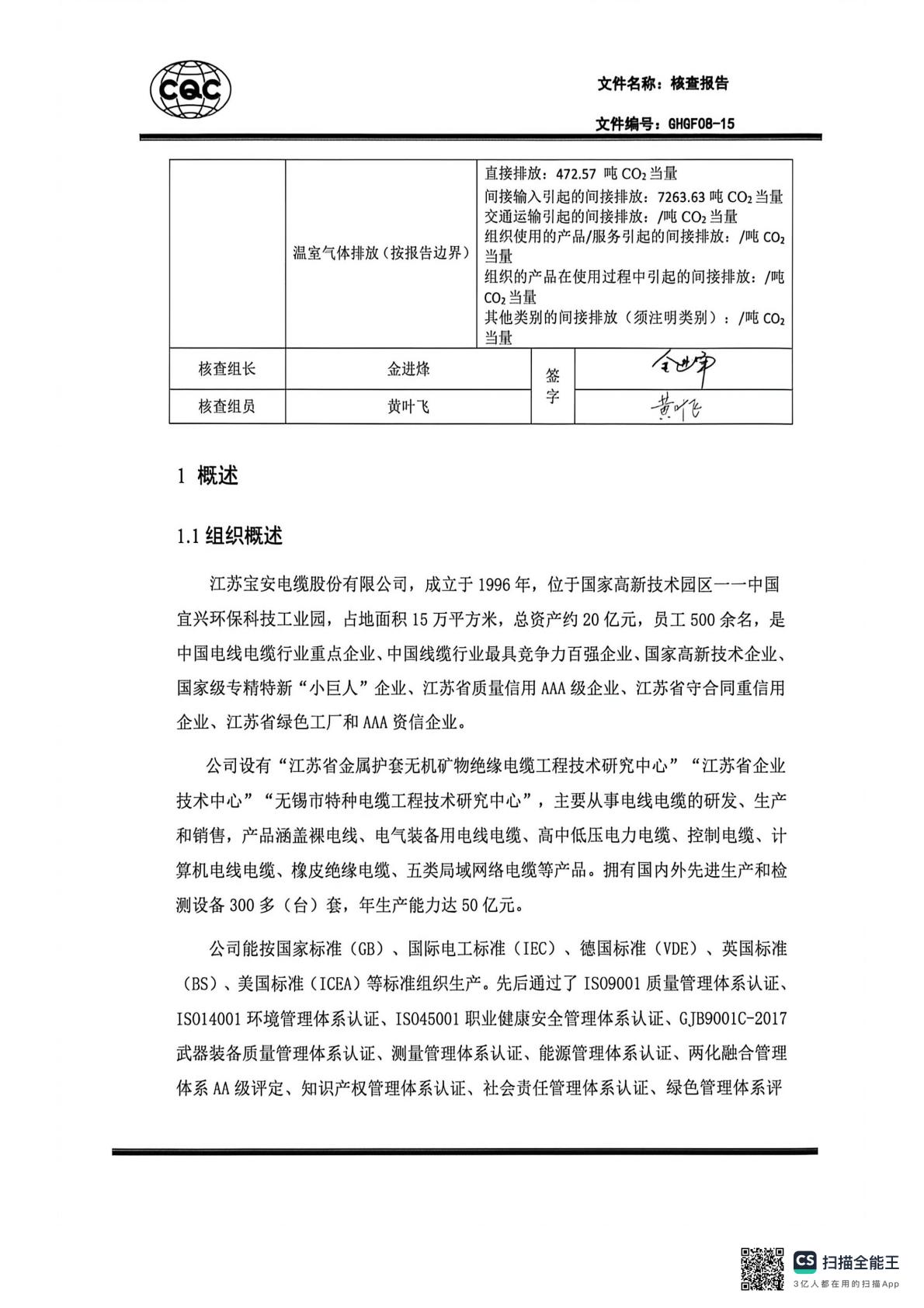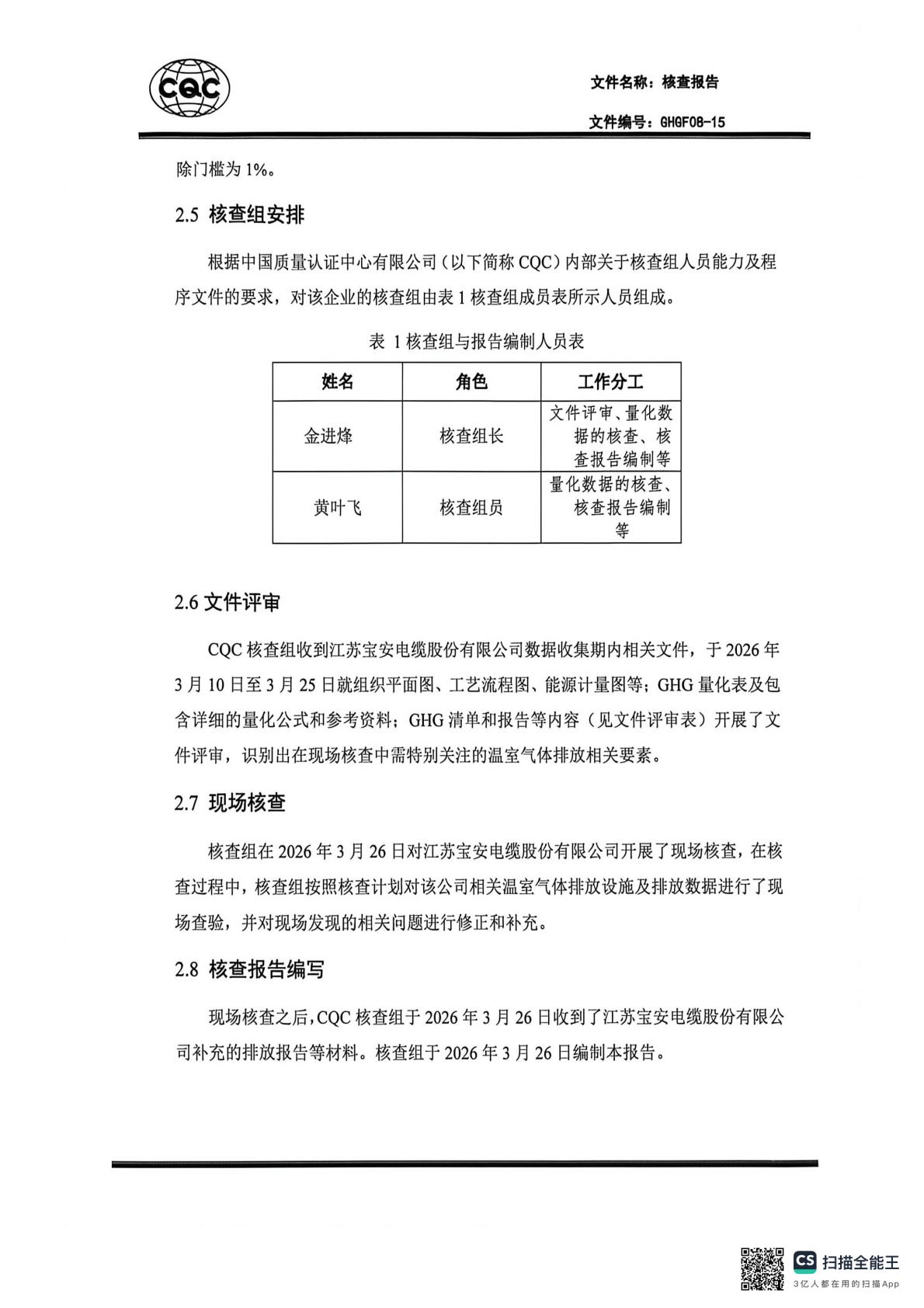江苏宝安电缆股份有限公司温室气体清单核查报告